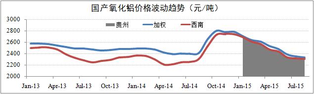 發(fā)稿時間:2015-08-22國產(chǎn)價格繼續(xù)下浮。報告期內(nèi),國產(chǎn)氧化鋁價格仍維持繼續(xù)下滑的基本趨勢,但整體降幅有所收窄。截至8月19日,國產(chǎn)日均價為2,325元/噸,月化同比下浮2.2%。其中,西南地區(qū)報價2,285元/噸,月化同比下浮0.9%;貴州報價2,285元/噸,月化同比下浮1.7%。目前,國產(chǎn)氧化鋁價格上浮機(jī)制尚未形成,預(yù)計第三季度氧化鋁價格將維持在2,250-2,450元/噸的均衡水平。