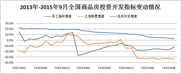 國家統(tǒng)計局數(shù)據(jù)顯示,9月份全國商品房土地購置面積累計同比降幅為33.8%,環(huán)比擴大了1.7個百分點;新開工面積累計同比降幅為12.6%,環(huán)比收窄了4.2個百分點;投資開發(fā)額累計同比增長2.6%,環(huán)比收窄了0.9個百分點。受土地購置面積降幅擴大的影響,9月份國房景氣指數(shù)下跌至93.40,環(huán)比輕微下滑了0.06個點。